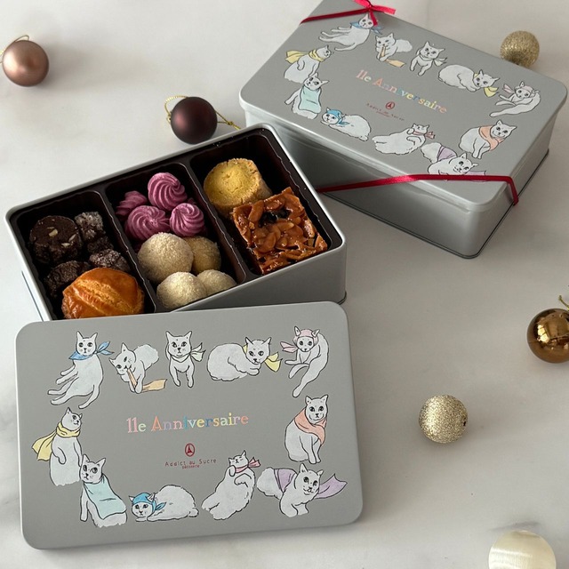 11周年記念 オーンズ シャ(グレー) 猫デザインのクッキー缶 6種焼き菓子セット【アディクト オ シュクル】【店頭受取専用】