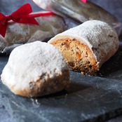 クラシックで伝統的なスタイルのシュトーレン。マジパンにはオレンジピールを練りこんでいます。自店で漬け込んだフルーツやナッツを10種と、北海道のバターの香りを纏わせて。
