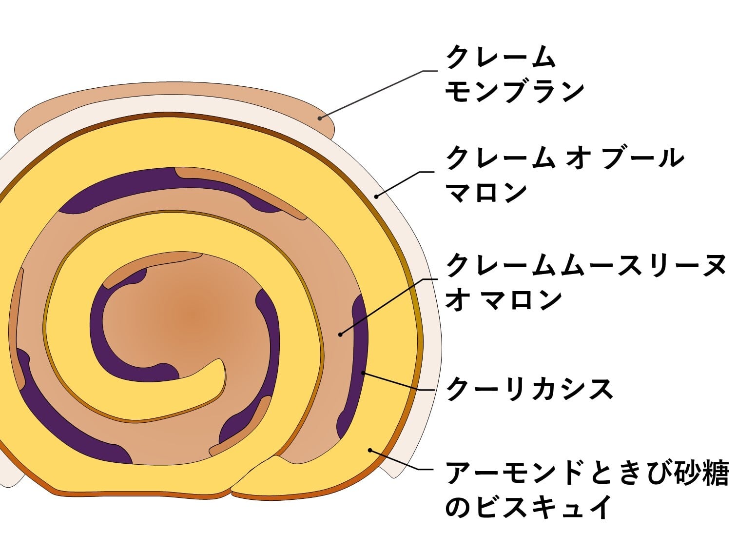ンドのロール生地に樹皮にはマロンのバタークリーム、年輪はコンポートカシスとムースリー