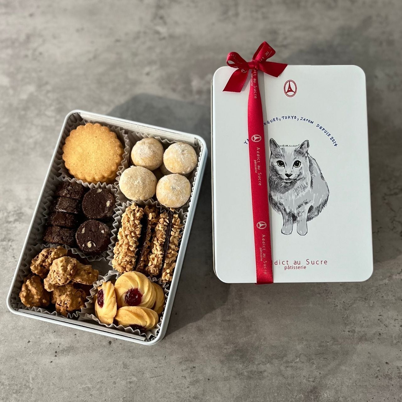 こちらのクッキー缶はアディクト オ シュクル店頭受け取り専用となります。